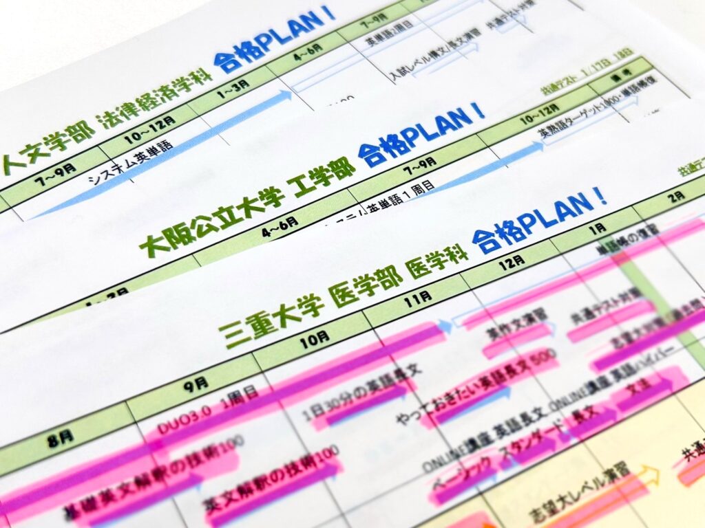 個別の計画表は、学校の進度にも配慮して作成されるため、学校の勉強の復習にもなり、効率よく受験勉強を進めることができます。基礎から応用まで、着実にステップアップできる仕組みです。